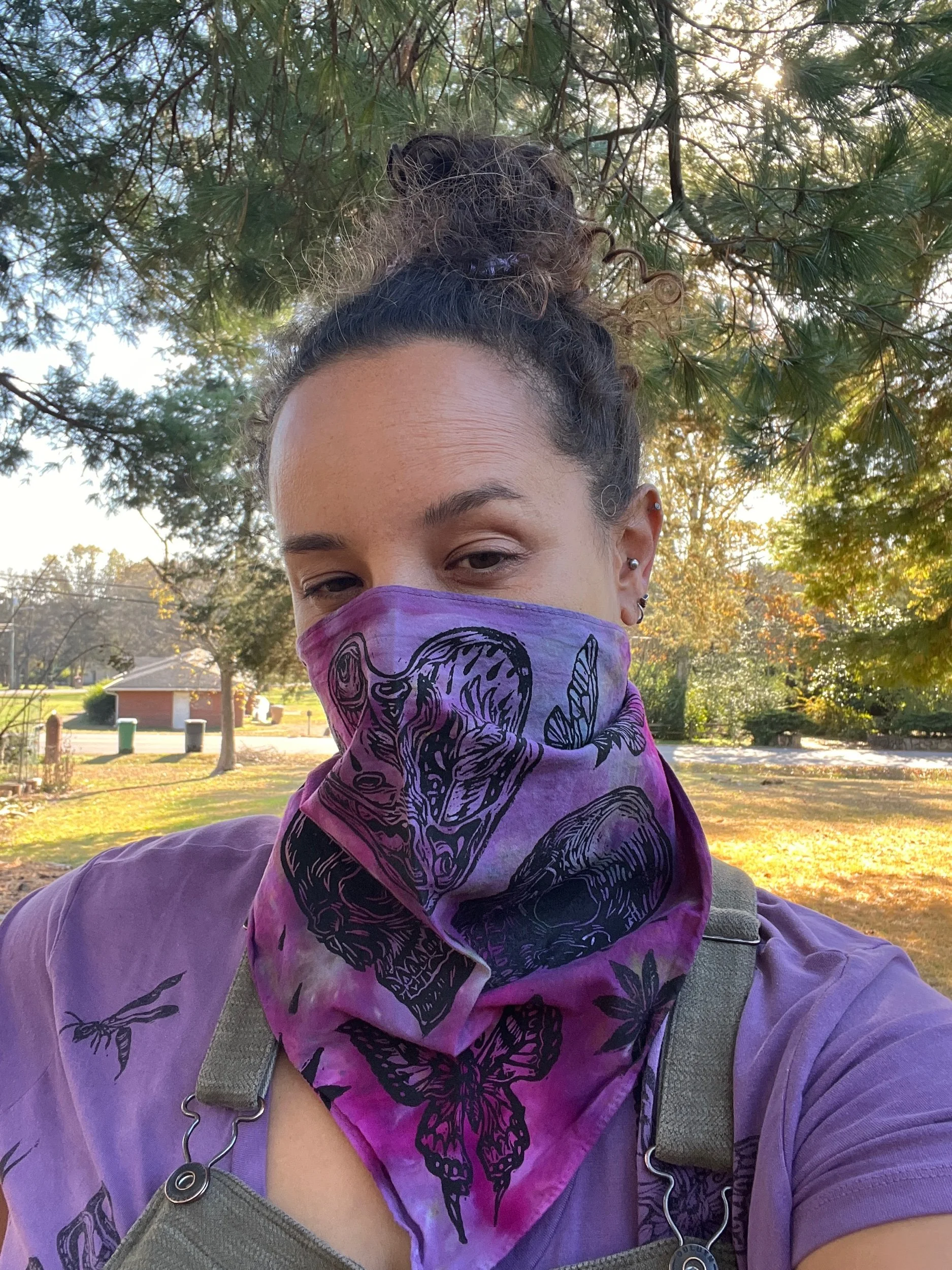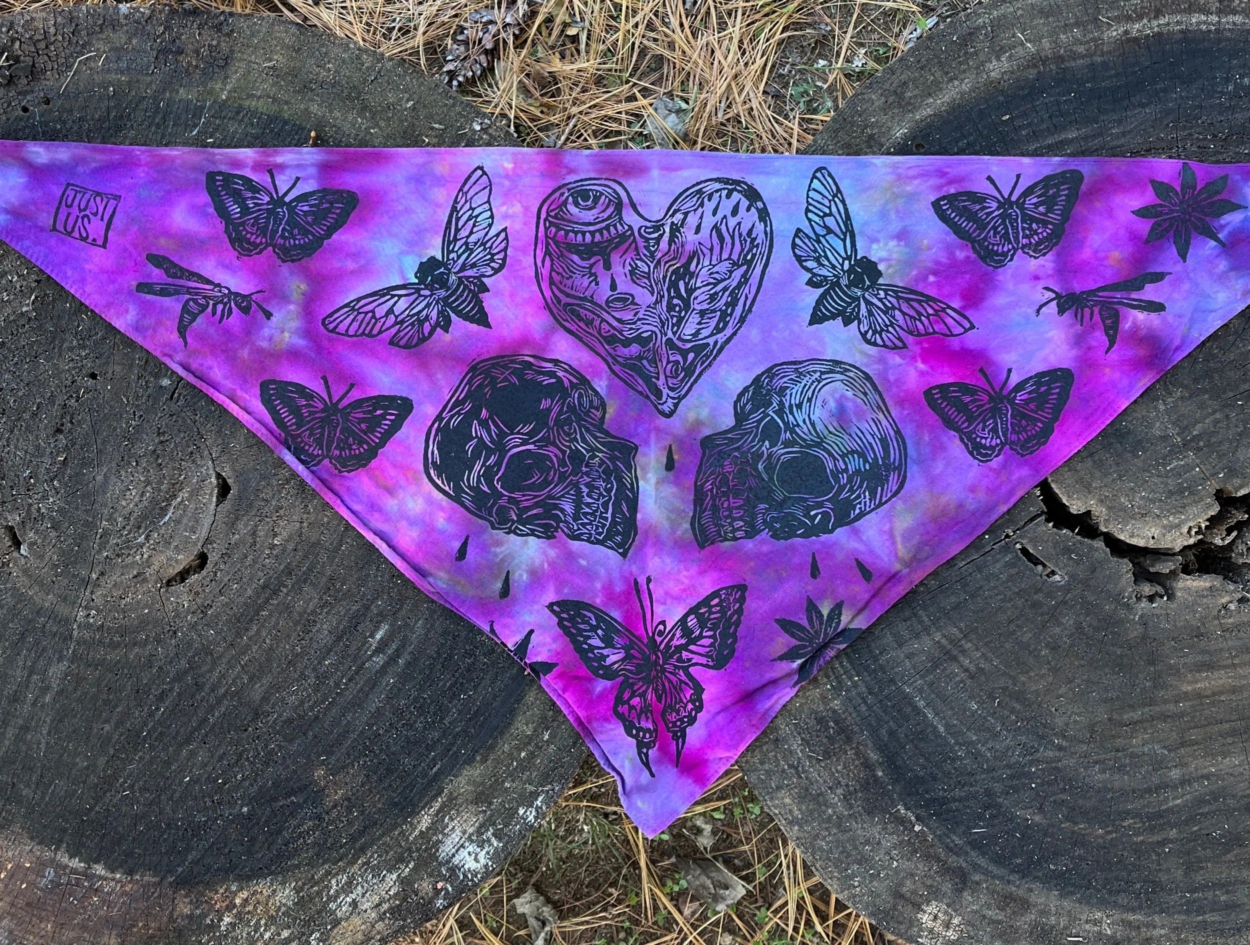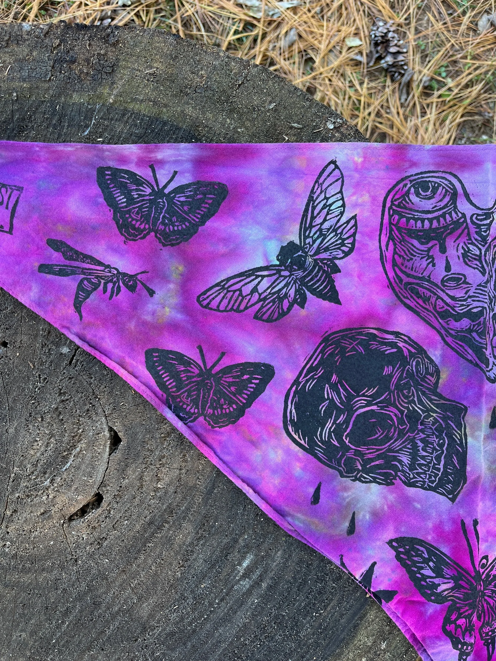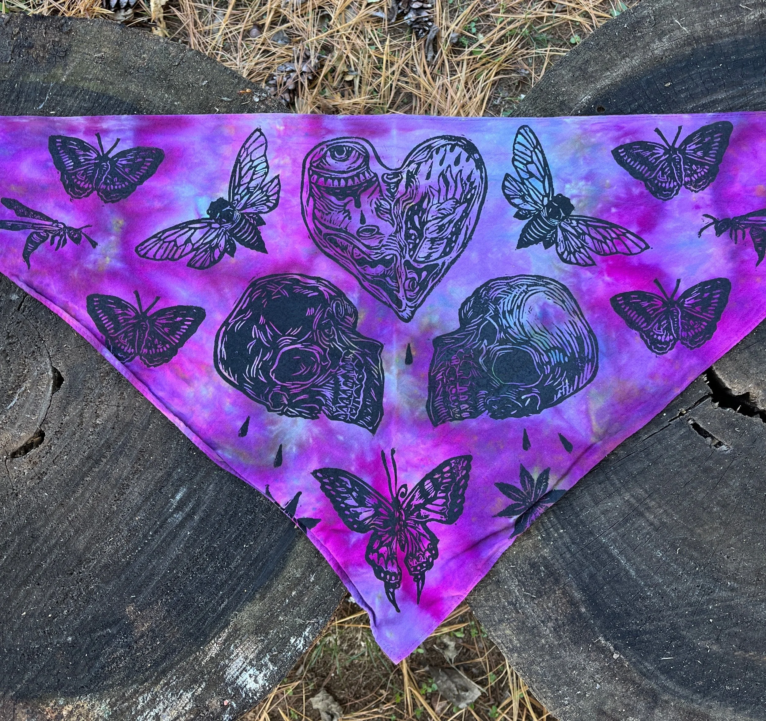 Hand stamped and ice-dyed cotton bandana, 29 x 14 x 20 inches.