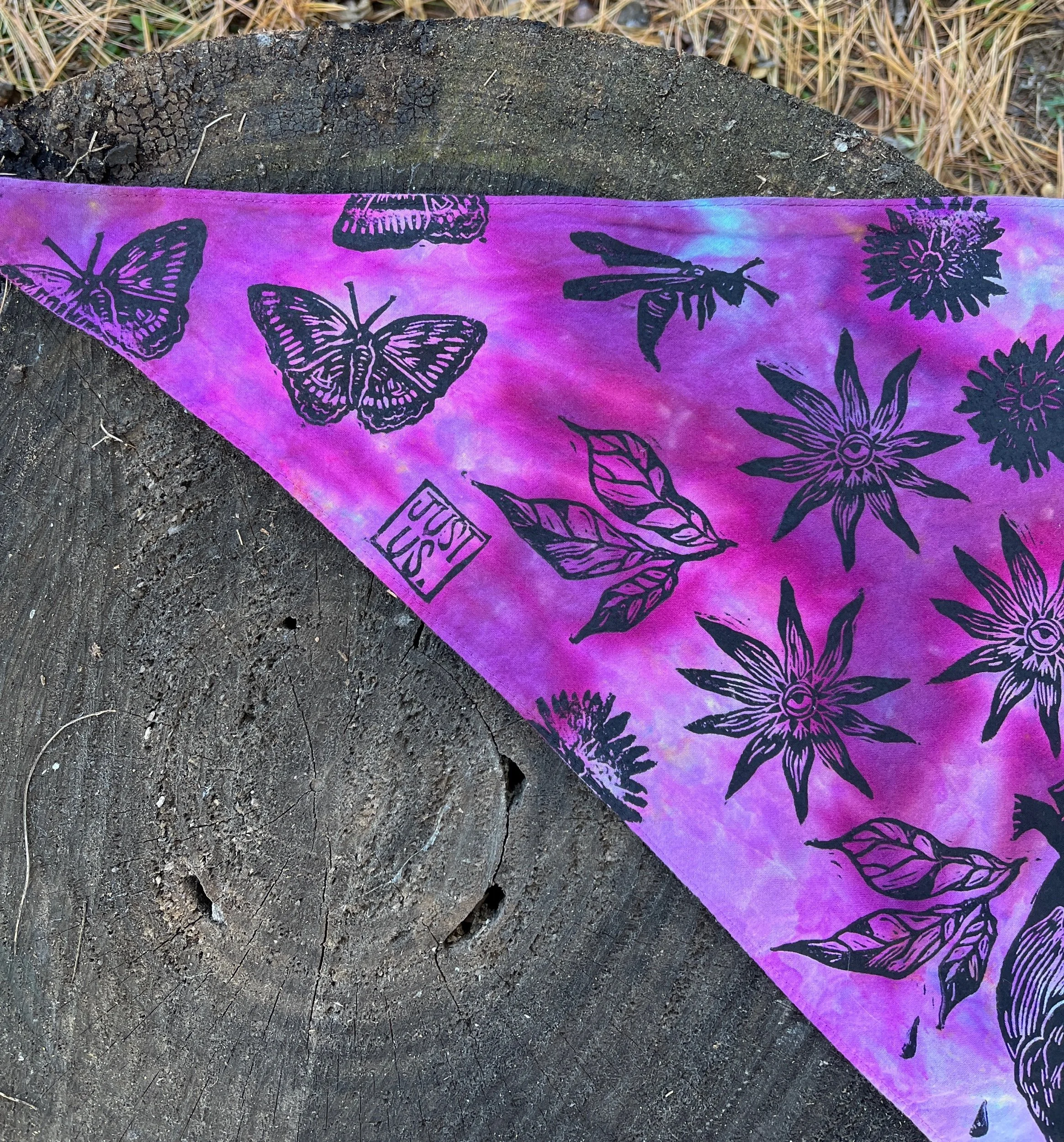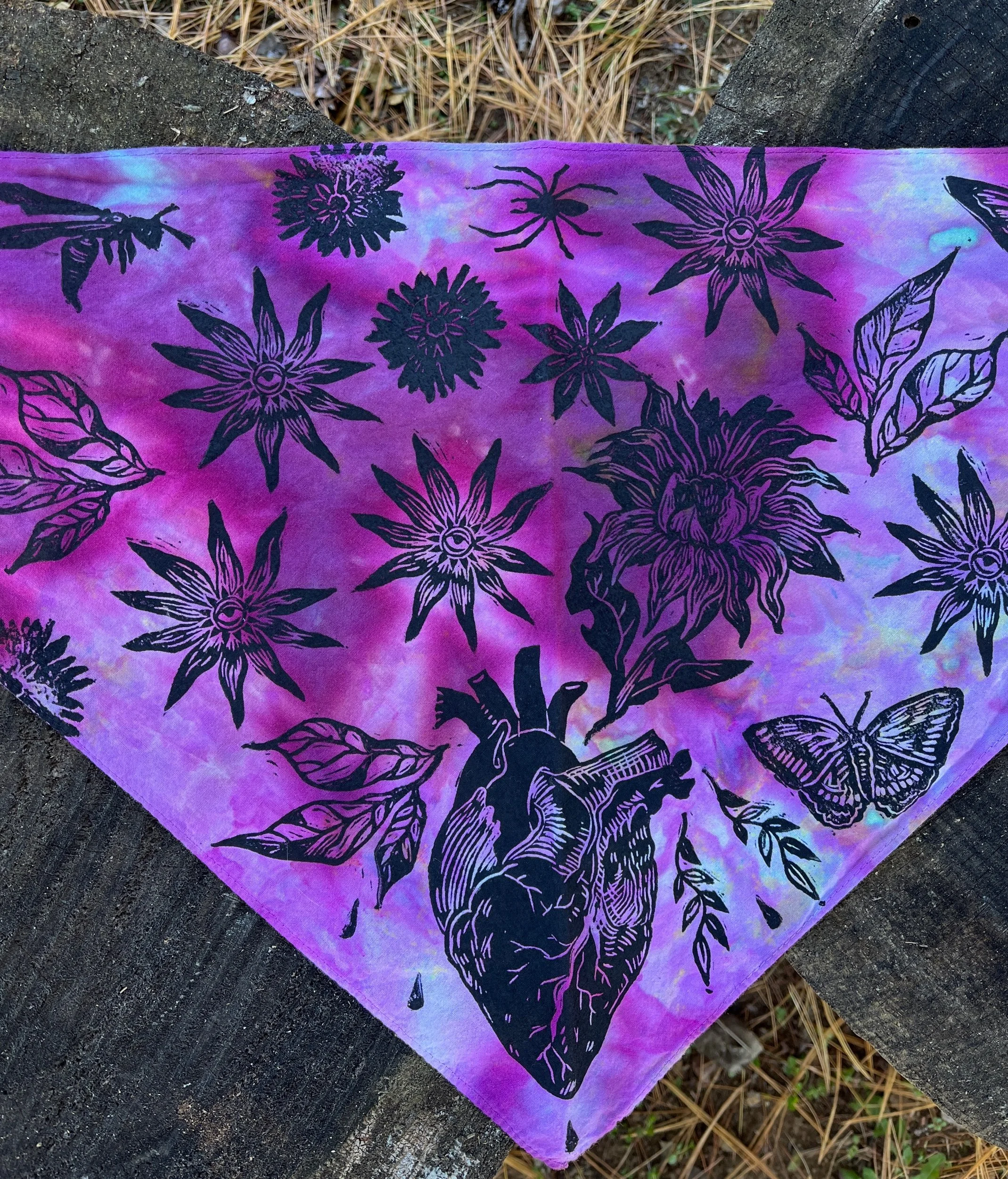 Hand stamped and ice-dyed cotton bandana, 29 x 14 x 20 inches.
