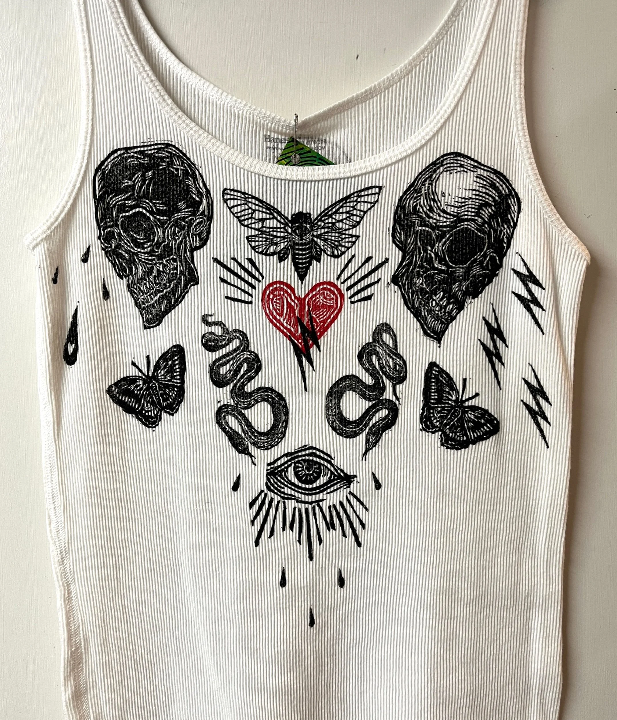 Care Instructions to help preserve your hand-printed, hand-dyed item: To launder, turn inside out and hand-wash (preferred) or machine wash on cold in a garment bag, gentle cycle. Hang dry.