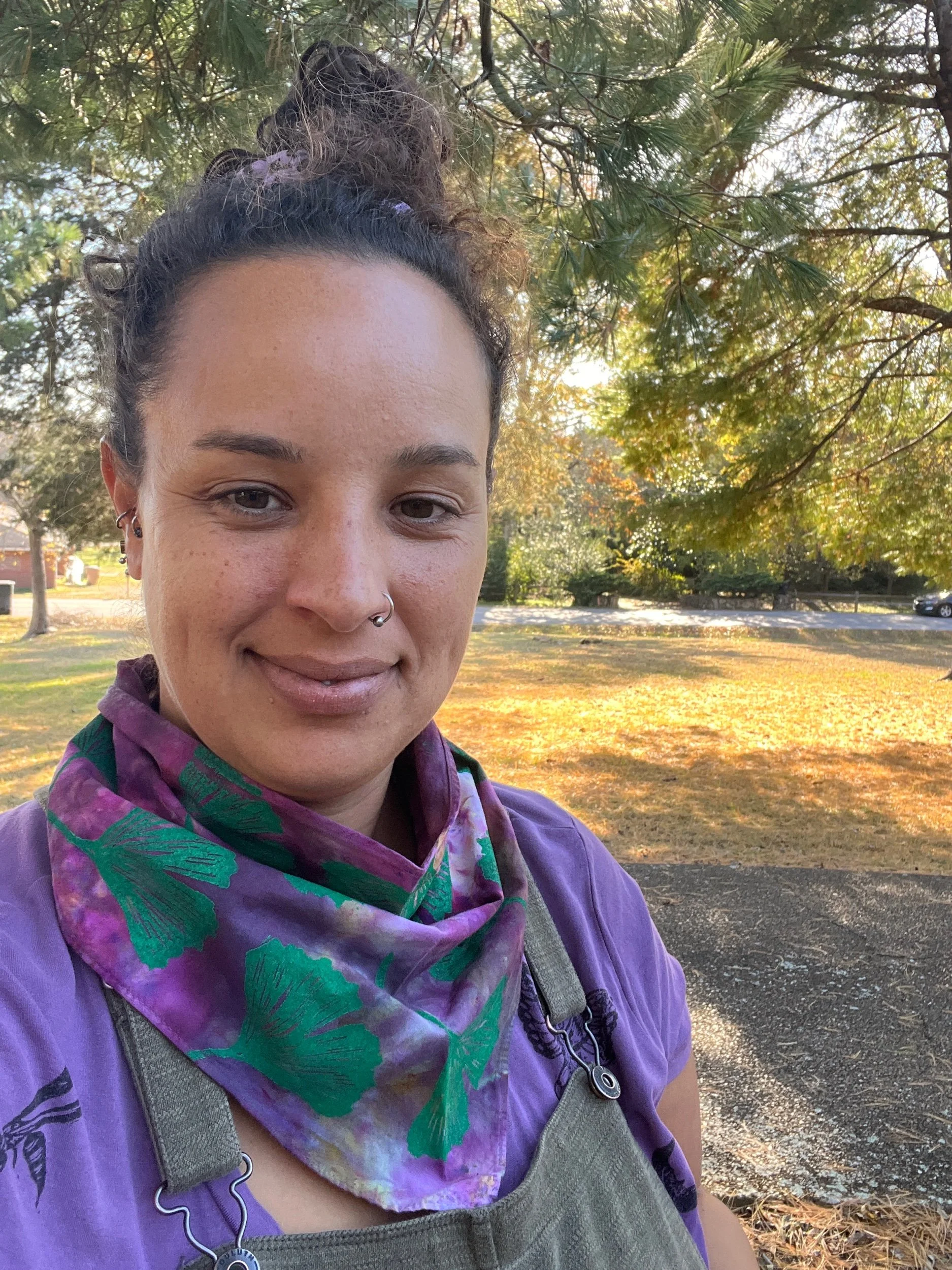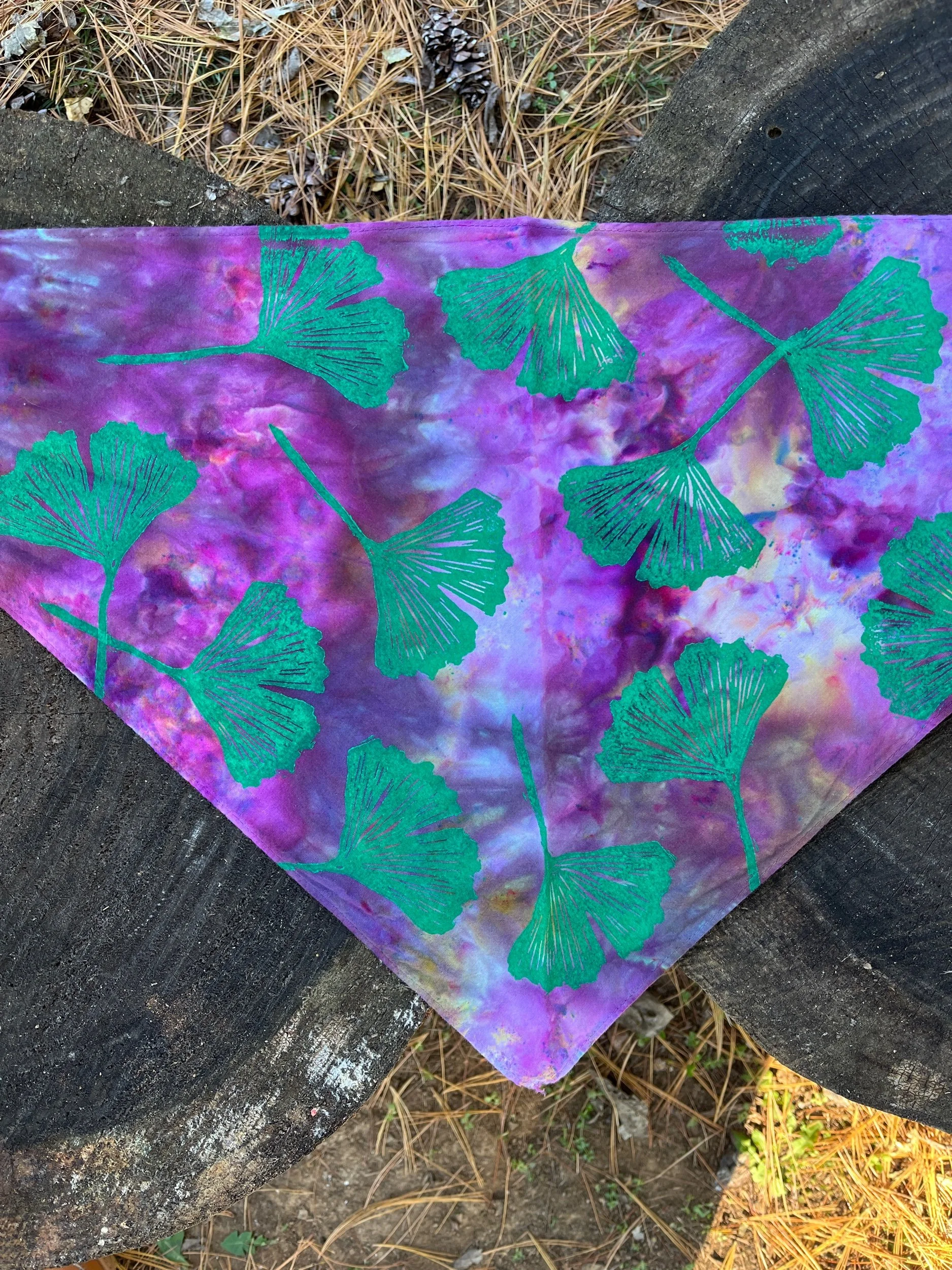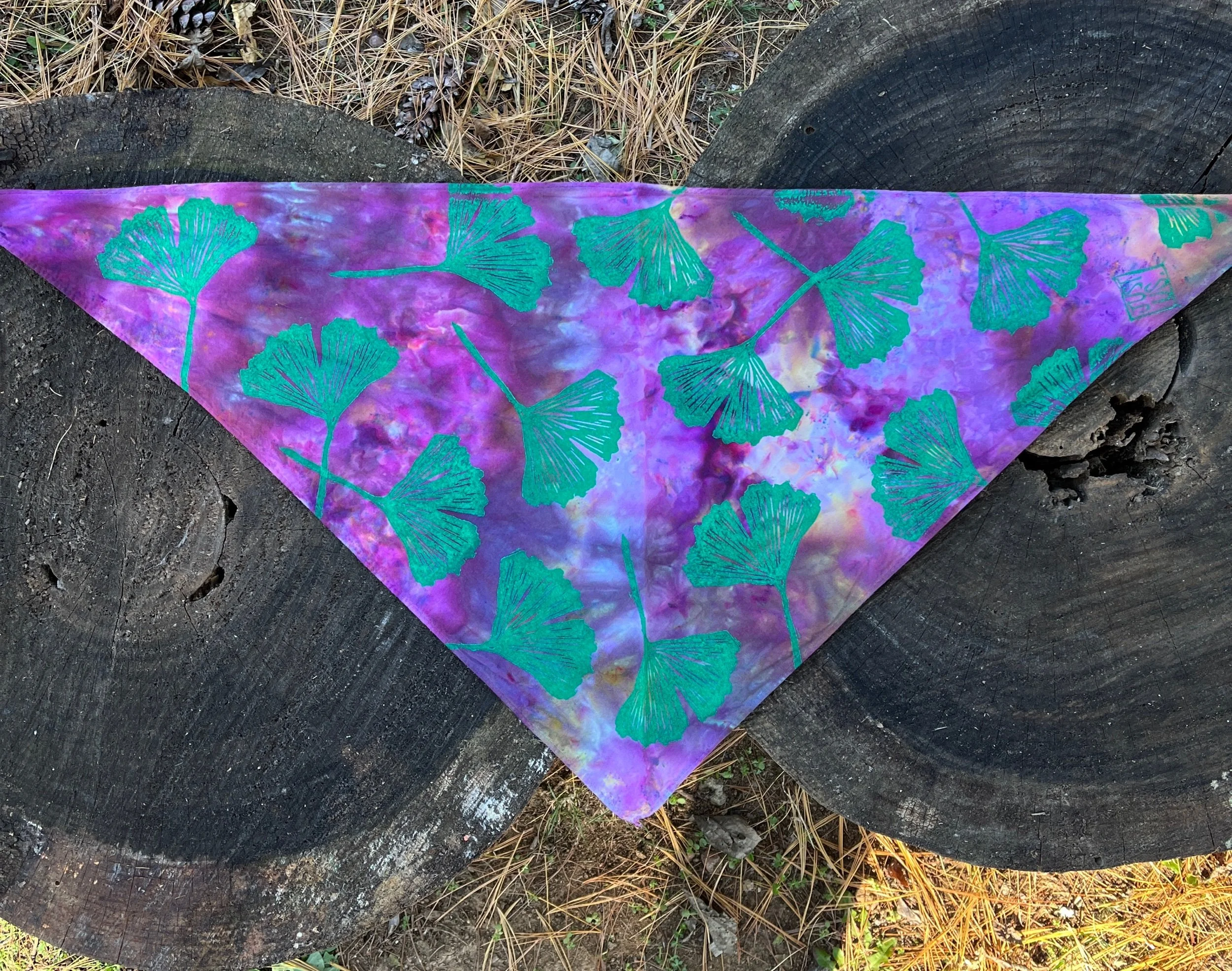 ‘Gingkos in Teal and Purple’ cotton triangle bandana
