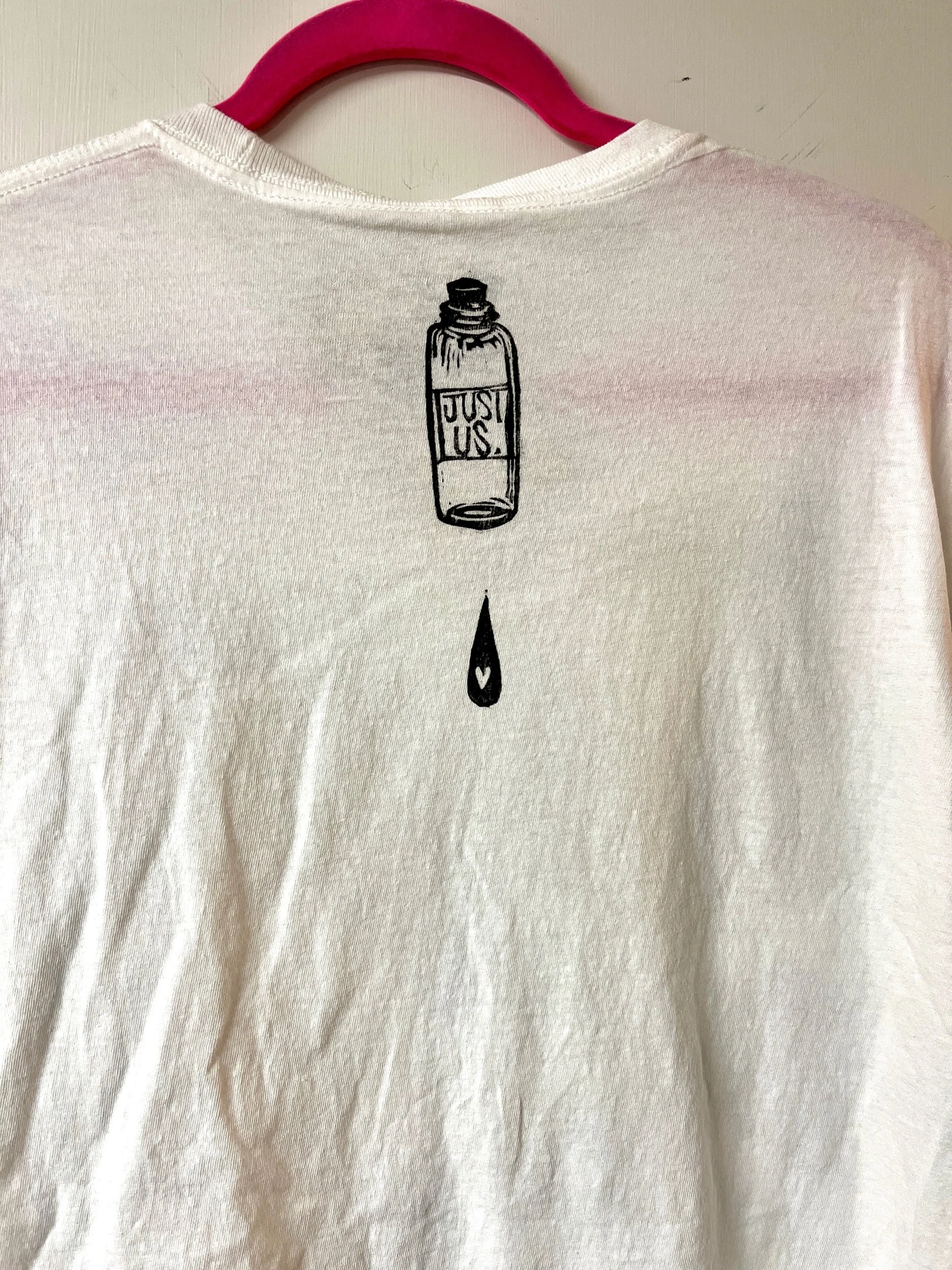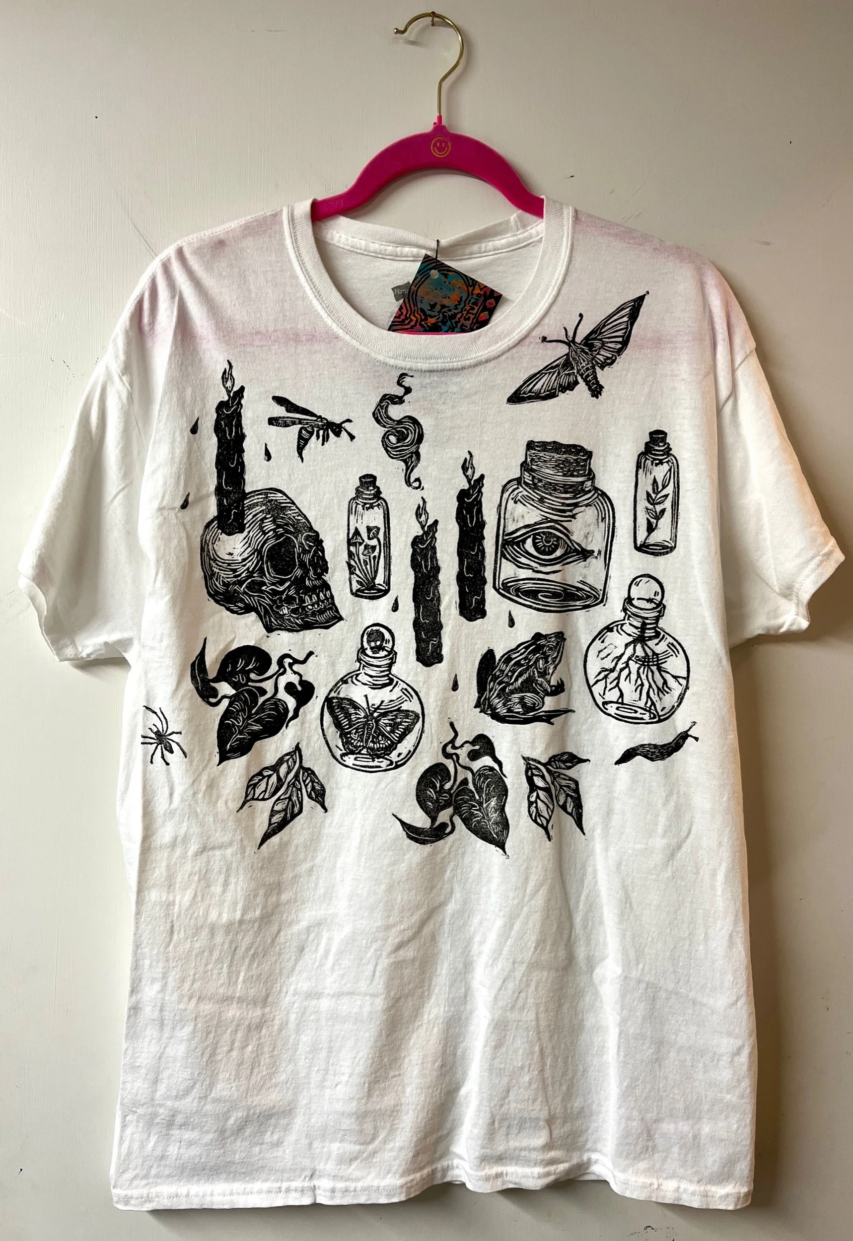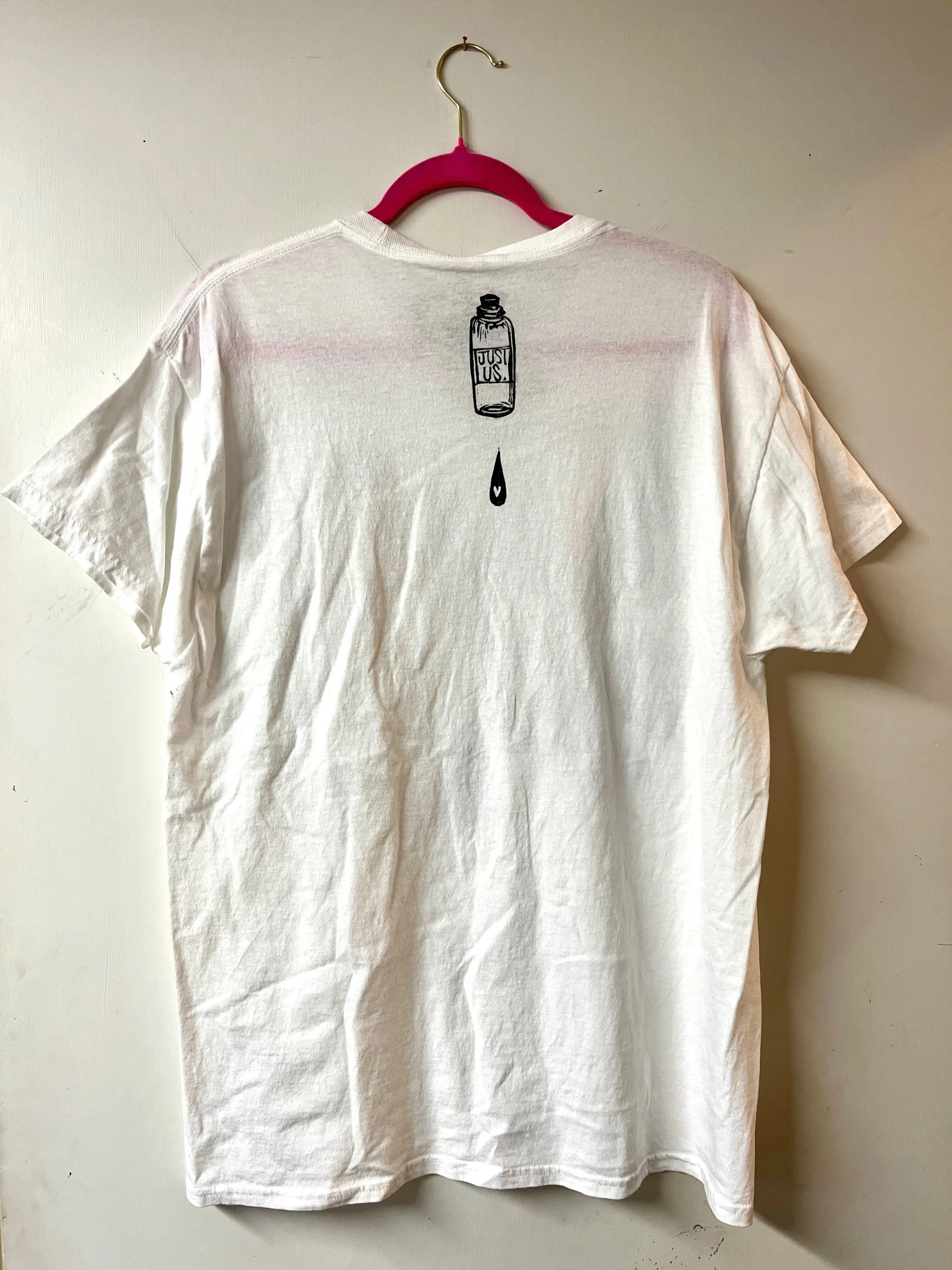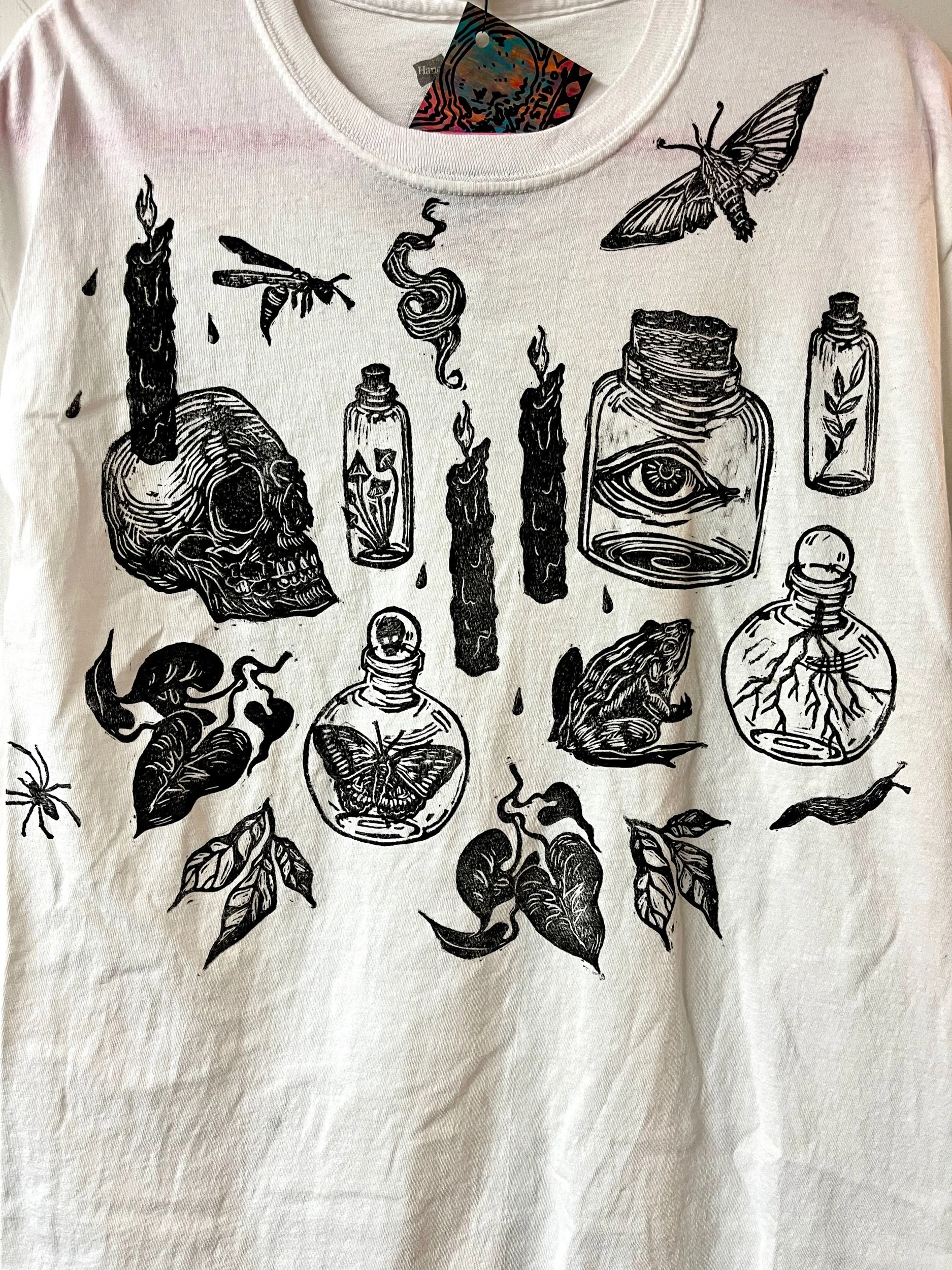 Hand stamped cotton tee, size Large.