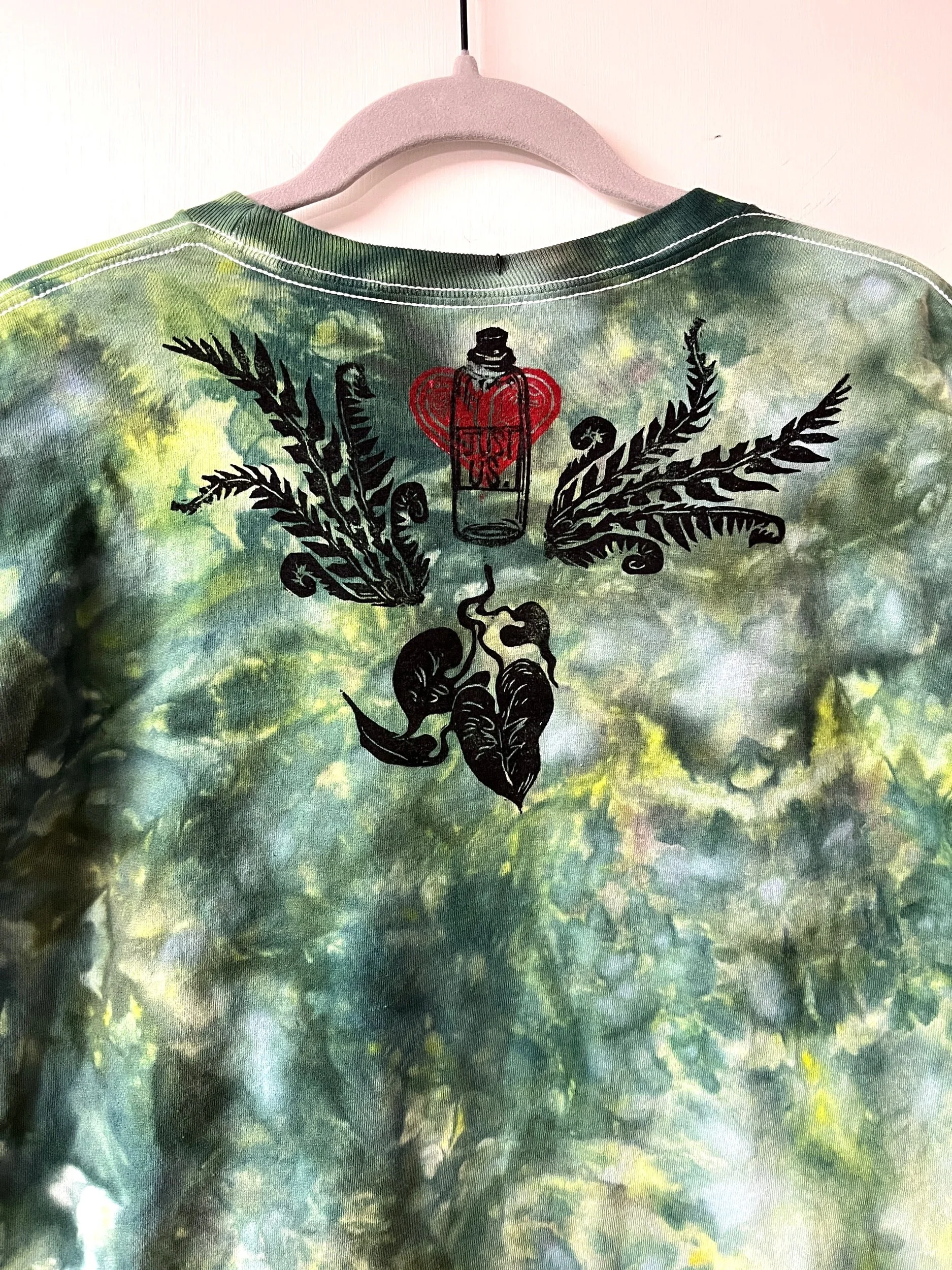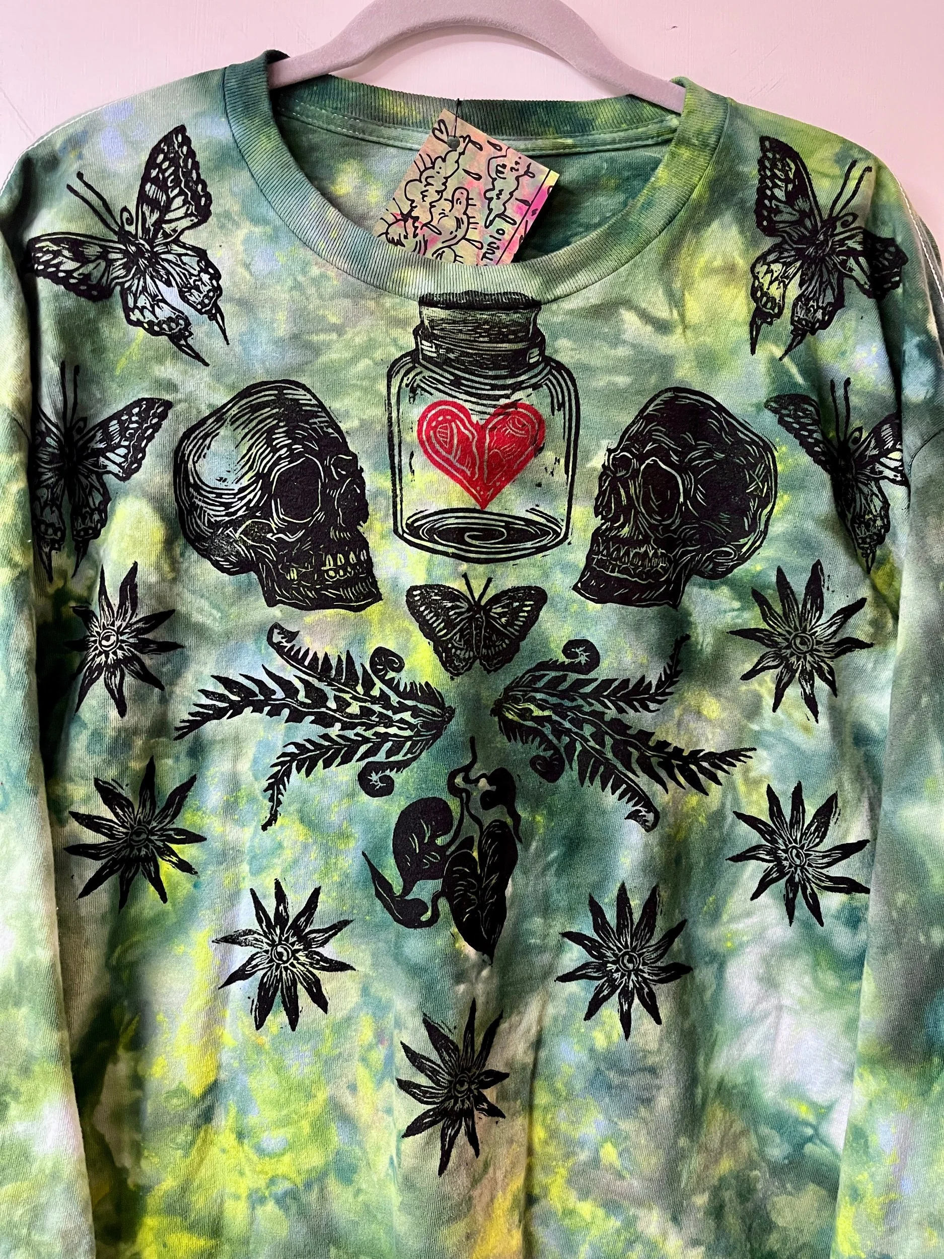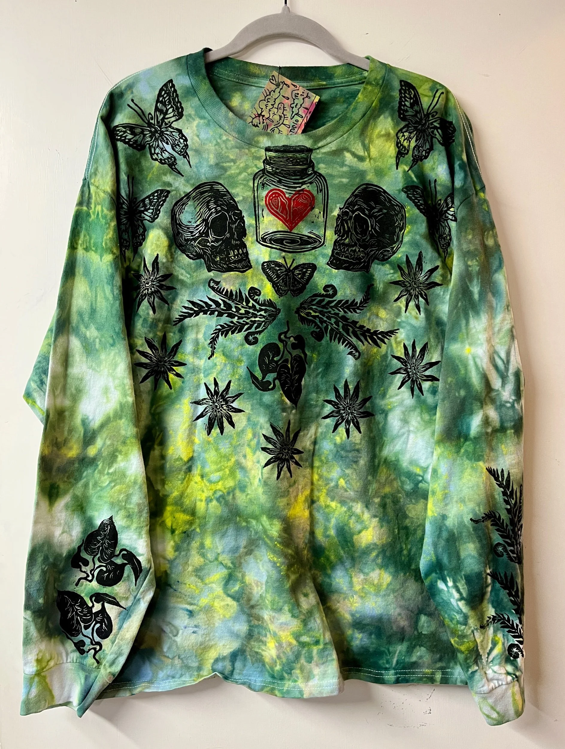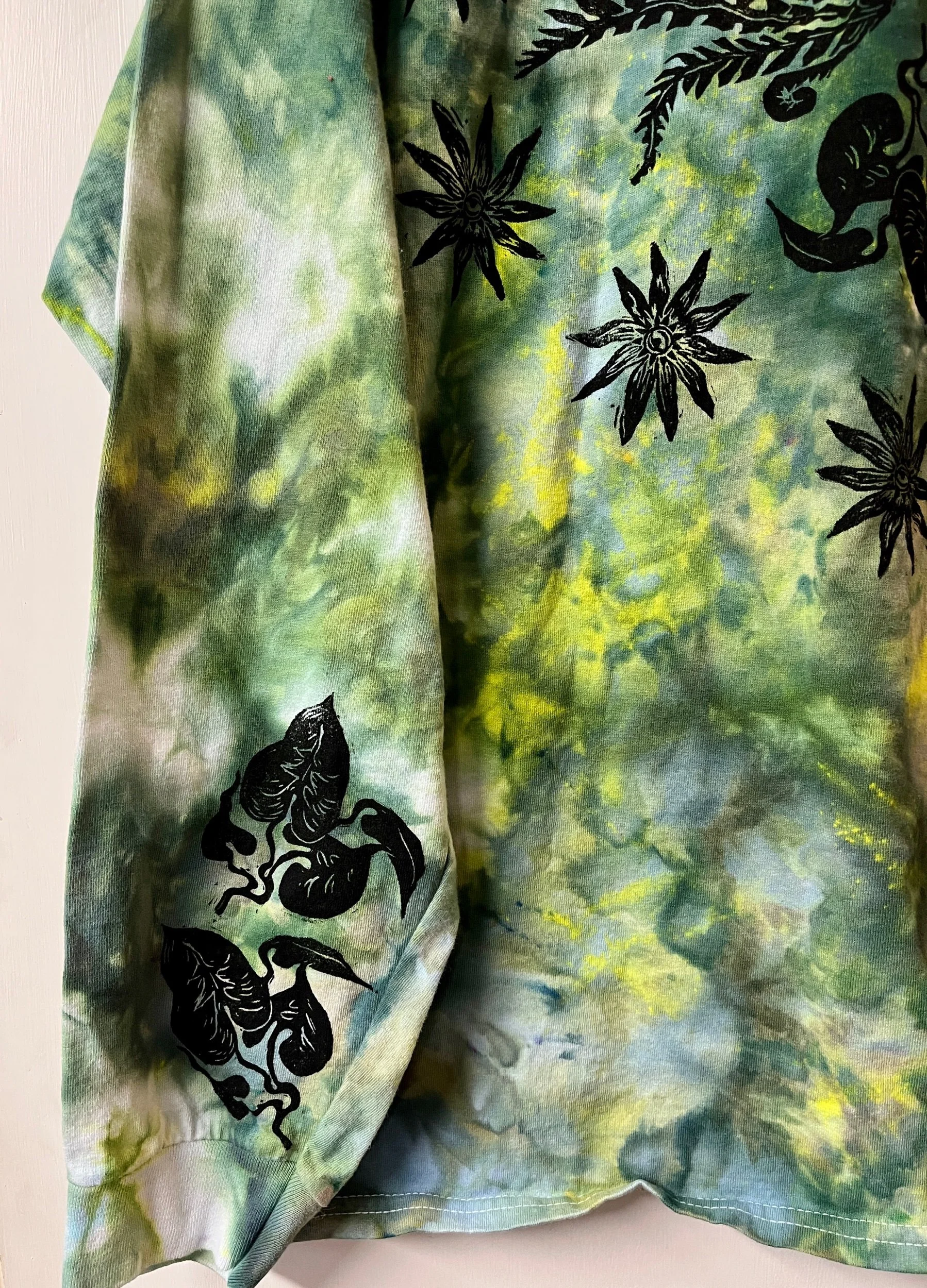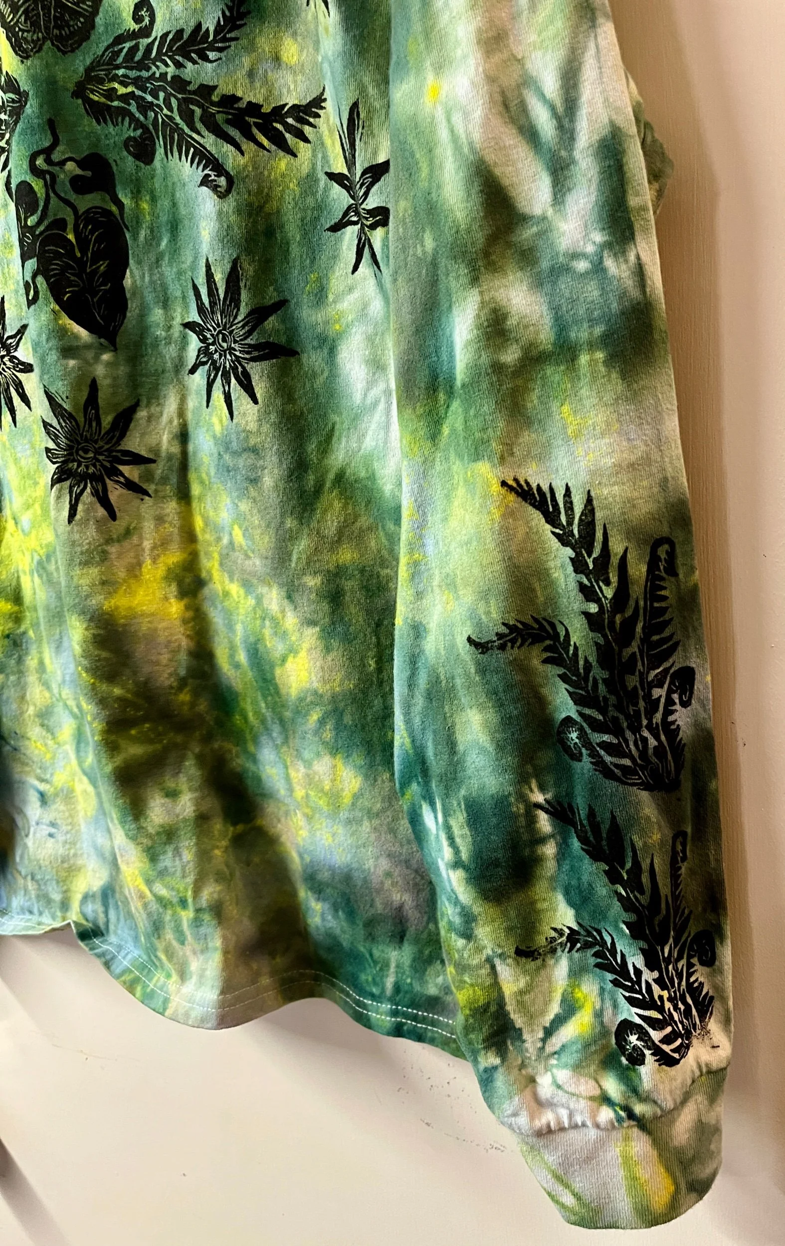 Hand stamped and ice-dyed cotton longsleeve tee, size XLarge.