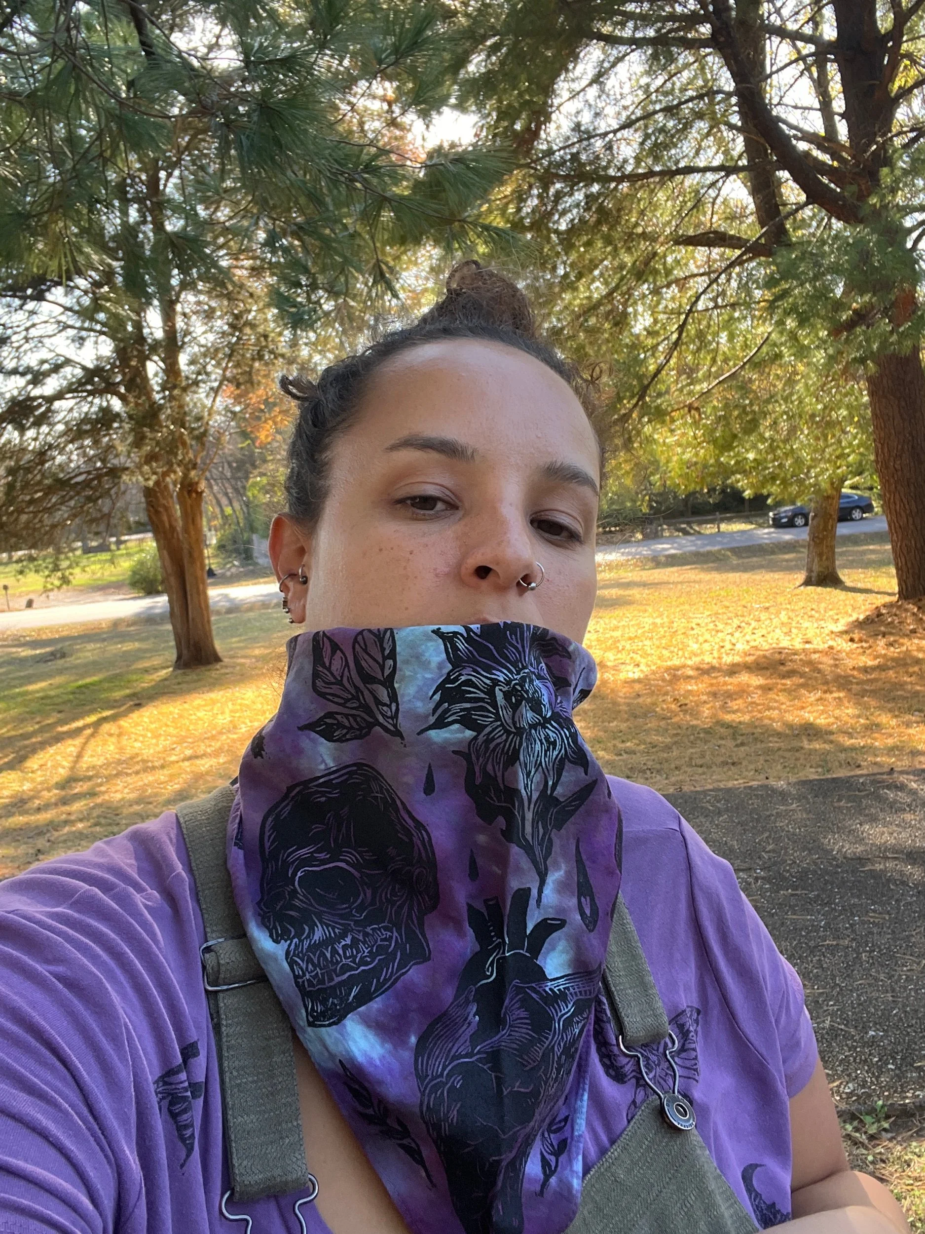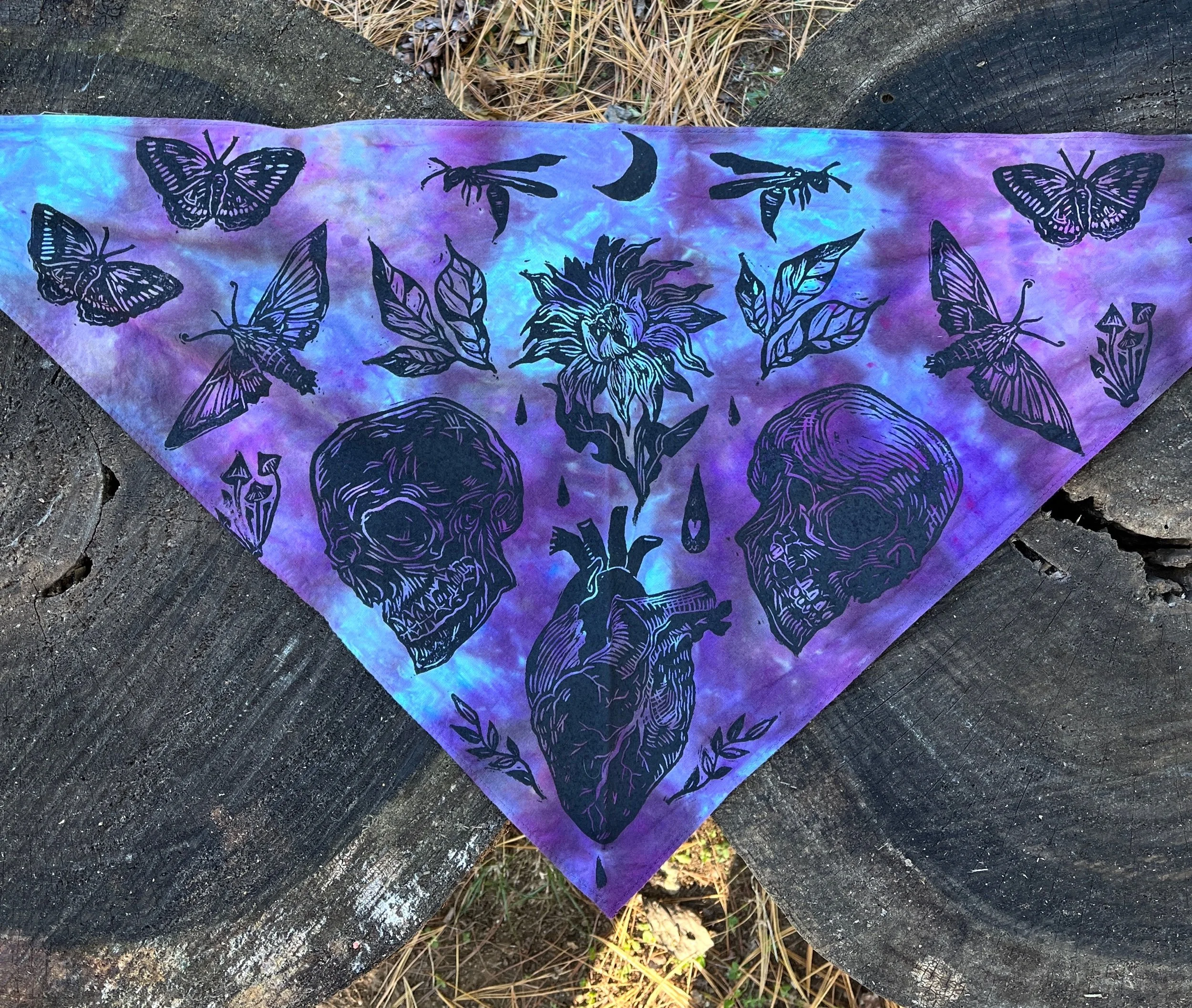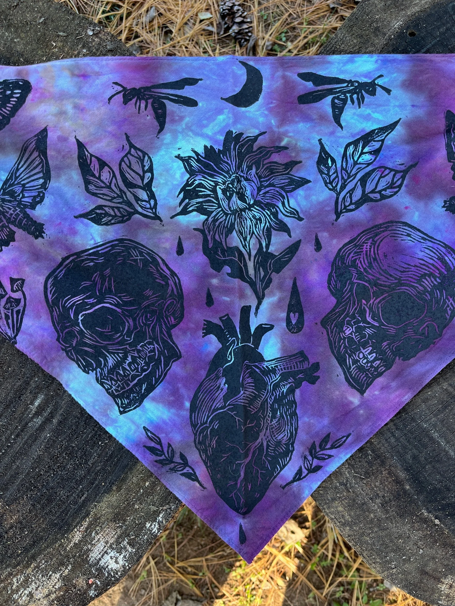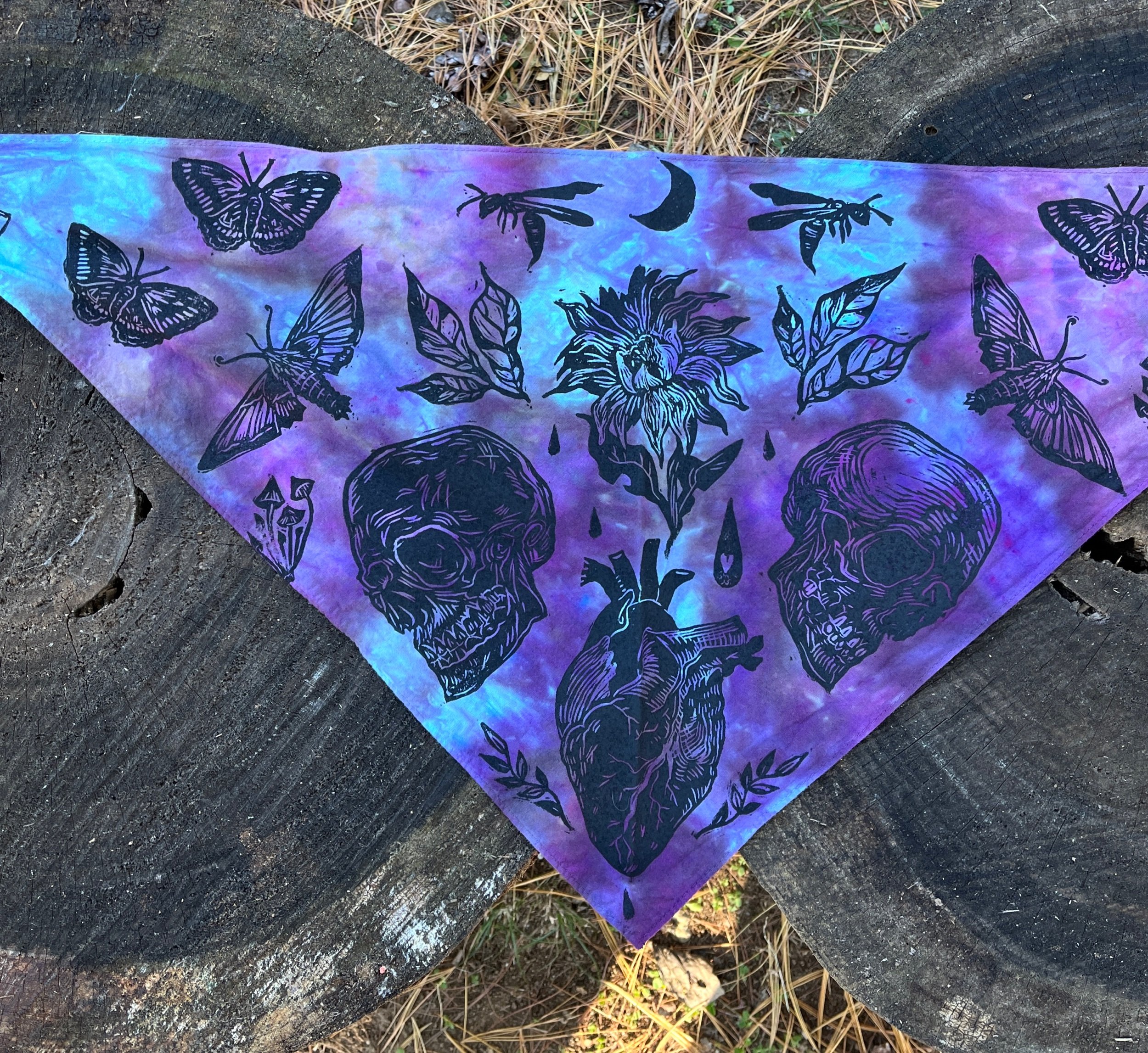 Hand stamped and ice-dyed cotton bandana, 29 x 14 x 20 inches.